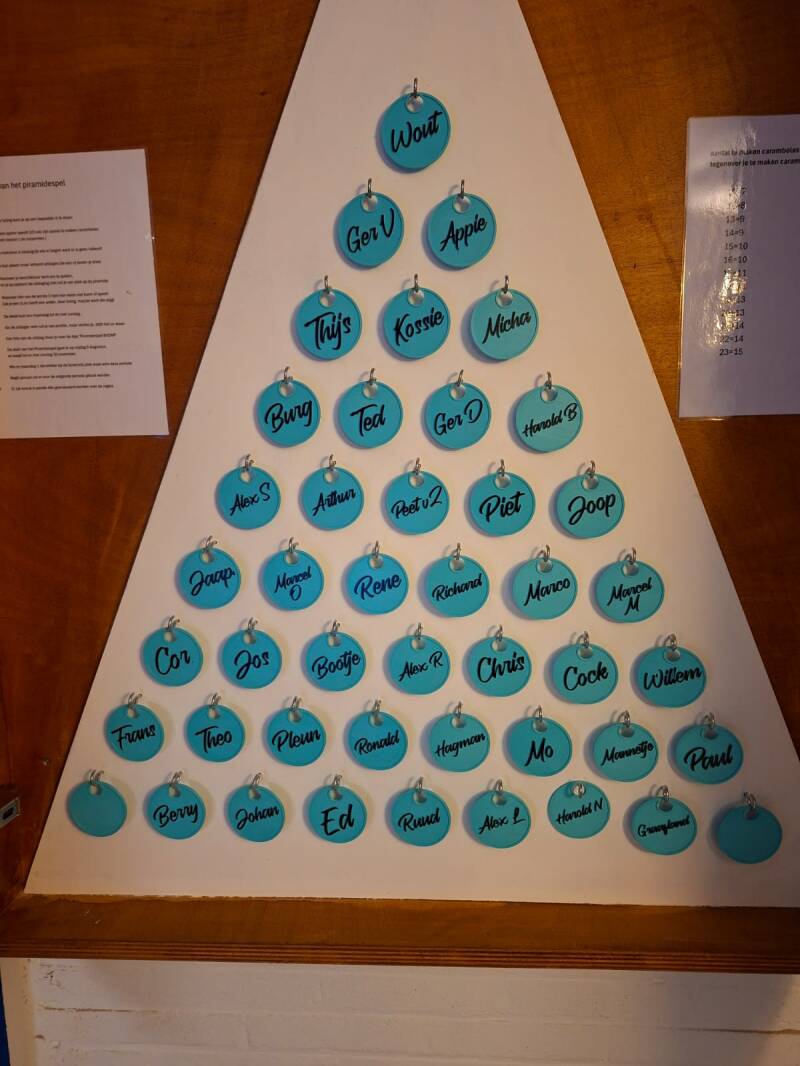 Piet is verhoogd naar 15 en Appie en Theo blijven gelijk.